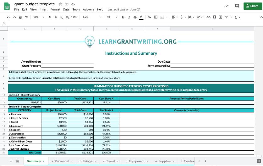 Free Grant Budget Template
